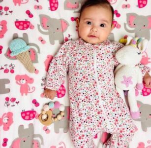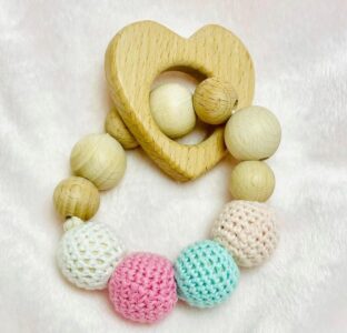 Snuggle&Play Handmade Crochet Teether With Wooden Heart Braclet