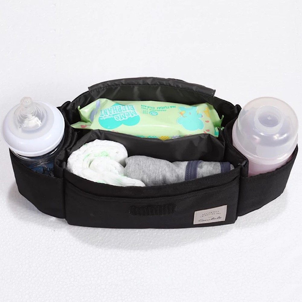 • Large capacity, can safely store baby food and snacks, bottles, diapers, your coffee, your phone, name it!