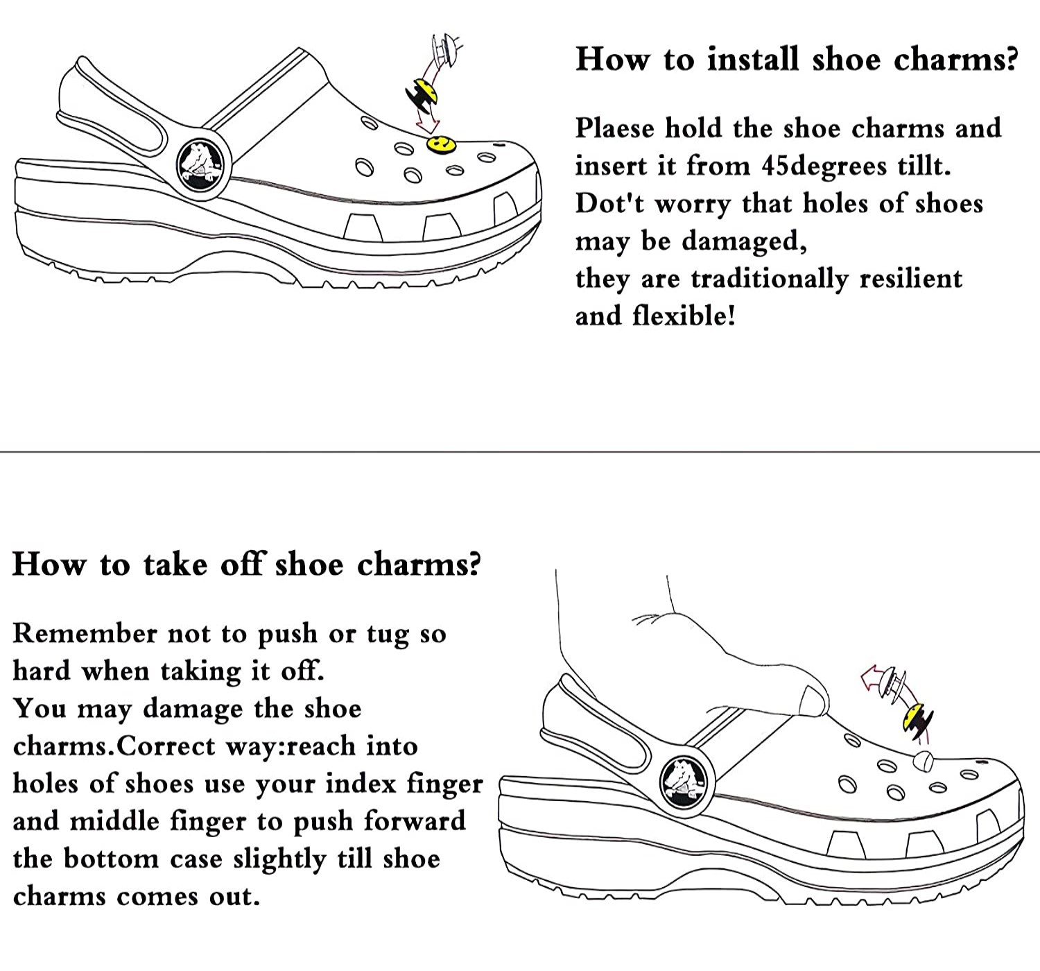 Our charms are made of high quality non-toxic waterproof PVC plastic material The anchor is made of hard plastic which will not fall off easily while perfectly attaching through the holes. Moreover, these charms are a great fit among the Crocs accessories. The lovely crocs charm will make the wrist bands or crocs way cooler. Finally, The perfect present for children who like to express themselves through personalization. Think birthday gift, holiday gift, and beyond.