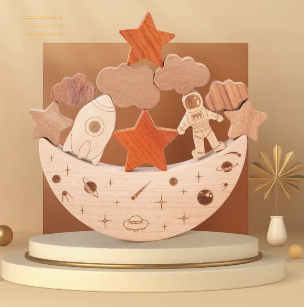 The Space Stacker is an interesting one for all kids and especially those who are so into space. This balance stacker comes with an astronaut, a rocket ship, stars and clouds. It’s a fun, educational toy that makes an introduction for space learning facts